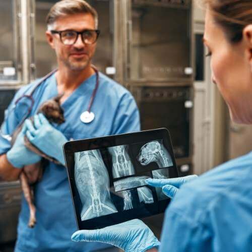 Evcil hayvanlarda kemik, eklem, kas ve bağ dokularını ilgilendiren rahatsızlıkların tanı ve tedavisi için veteriner ortopedi hizmeti sunuyoruz. Ortopedik problemler; doğuştan gelen yapısal bozukluklar, travmalar, kazalar ve yaşa bağlı eklem sorunları nedeniyle ortaya çıkabilir.